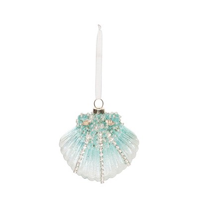Gallerie II 3.54" Glass & Pearls Aqua Fan Sea Shell Hanging Ornament