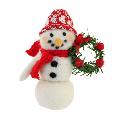Holiday Ornament 4.0 Inch Snmowman With Wreath Tree Ornament , Knit Hat Scarf (1PC)