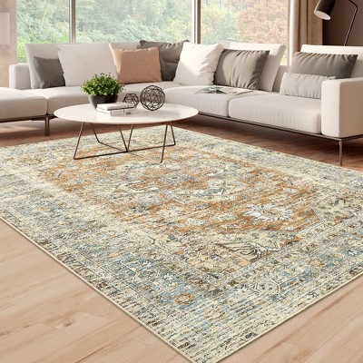 WhizMax Vintage Rug Washable Rug Floral Print Area Rug