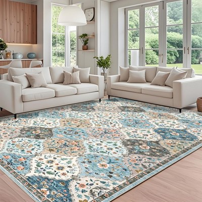 Washable Rugs for Living Room Modern Bordered Floor Mats with Non-Slip Backing