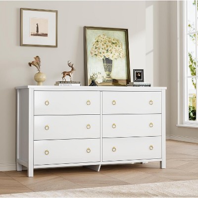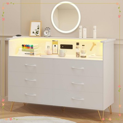 6 Drawers Dressers with 2-Tier Open Shelves