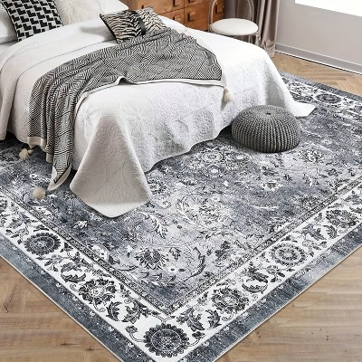 Modern Floral Rug Washable Area Rug Farmhouse Living Room Bedroom Rug Carpet