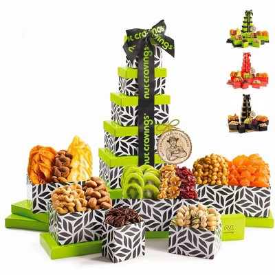 Dried Fruit & Nuts Gift Basket Leaf Tower + Ribbon (12 Assortments) Premium Arrangement Gift