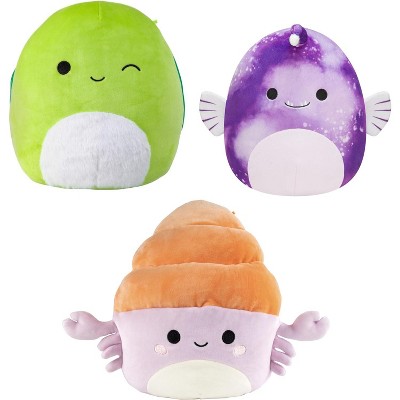 Squishmallows 8" Angler Fish, 10" Hermit Crab & Turtle 3-Pack Sealife Squad Plush- Collectible Sea Fish Stuffed Animal Toy-Gift for Kids, Girls & Boys
