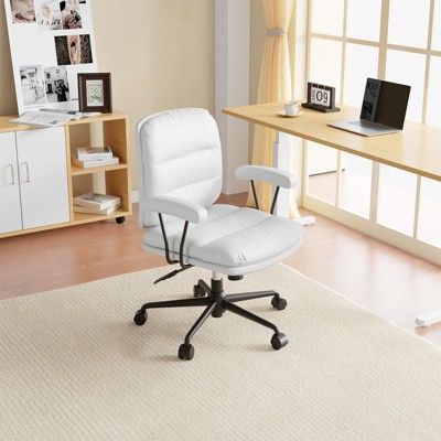Karl Home |24 W White Swivel Upholstered PU Office Chair