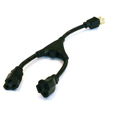 Monoprice Power Cord Splitter Cable - 1.17 Feet - Black | NEMA 5-15P to 2x NEMA 5-15R, 16AWG, 10A