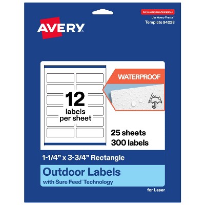 Avery Outdoor Waterproof Labels, 1.25" x 3.75" Rectangle