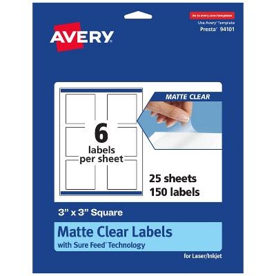 Avery Matte Clear Labels,  3" x 3" Square