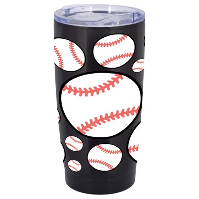 100 North 20 Ounce Stainless Steel On the Go Travel Tumbler With Push Top Lid, Baseball Black