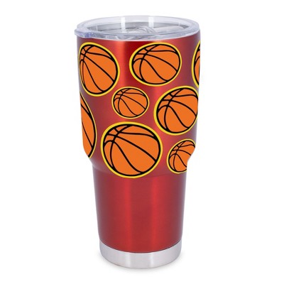 100 North 30 Ounce Stainless Steel On the Go Travel Tumbler With Push Top Lid, Basketball Red
