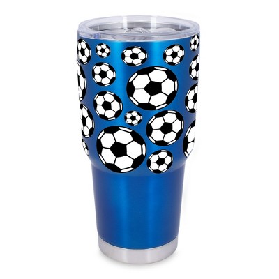 100 North 30 Ounce Stainless Steel On the Go Travel Tumbler With Push Top Lid, Soccer Ball Blue
