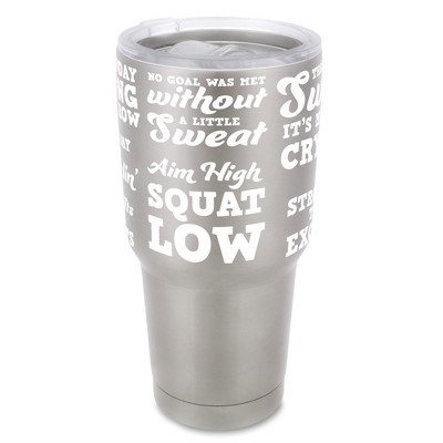 100 North 30 Ounce Stainless Steel On the Go Travel Tumbler With Push Top Lid, Aim High Squat Low Silver