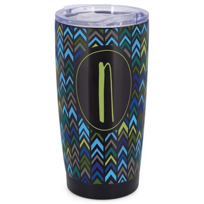 Elanze Designs N Monogram Herringbone Arrows Wrap-Around Design 20 Ounce Stainless Steel On-The-Go Coffee Mug, Thermal Travel Tumbler with Leak