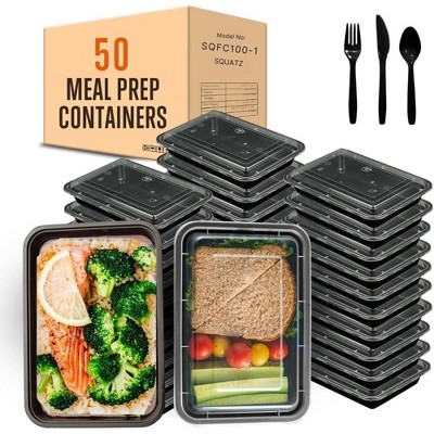 SQUATZ 50 Meal Prep Containers with Lids for Adults - Black