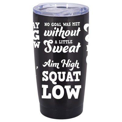 100 North 20 Ounce Stainless Steel On the Go Travel Tumbler With Push Top Lid, Aim High Squat Low Black