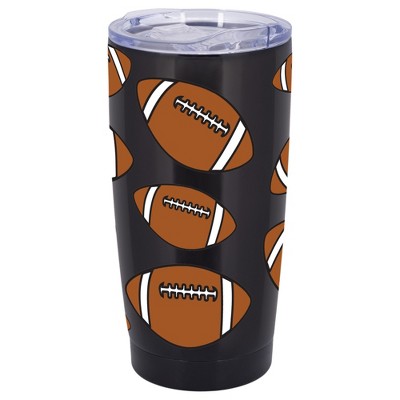 100 North 20 Ounce Stainless Steel On the Go Travel Tumbler With Push Top Lid, Football Black