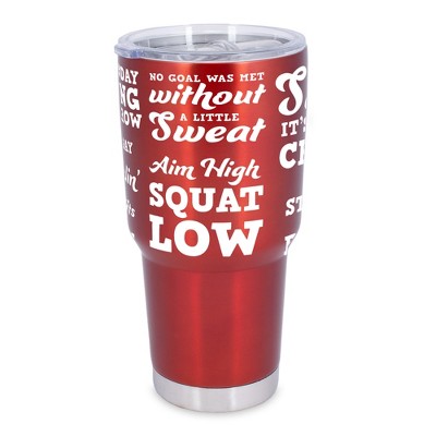 100 North 30 Ounce Stainless Steel On the Go Travel Tumbler With Push Top Lid, Aim High Squat Low Red
