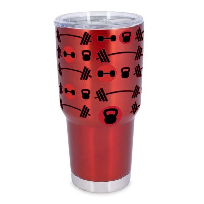 100 North 30 Ounce Stainless Steel On the Go Travel Tumbler With Push Top Lid, Workout Weights Red
