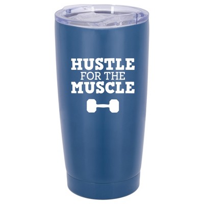100 North 20 Ounce Stainless Steel On the Go Travel Tumbler With Push Top Lid, Hustle for the Muscle Blue