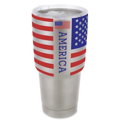 100 North 30 Ounce Stainless Steel On the Go Travel Tumbler With Push Top Lid, American Flag Red