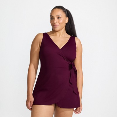 Lands' End Women's Side Tie Mini Swim Dress Swimsuit
