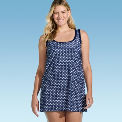 Lands' End Women's Side Tie Mini Swim Dress Swimsuit