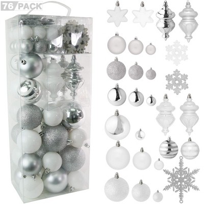 R N' Ds Christmas Snowflake Ball Ornaments - White and Silver - 76 Pack