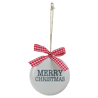 Northlight 4.5" White and Red Merry Christmas Ornament with a Bow
