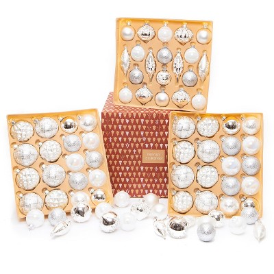 Every Day is Christmas 76 Count Glass Christmas Ball Ornaments for Christmas Trees, Elegant Premium Variety Set of Holiday Decorations (Silver)