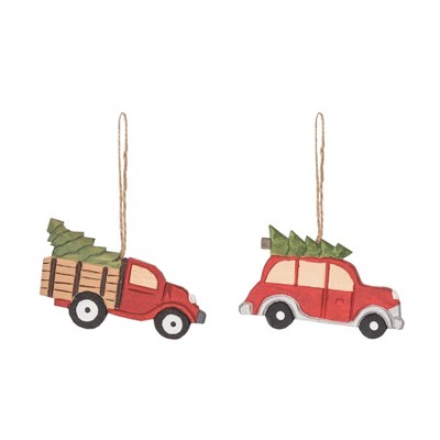 Gallerie II Wood Carved Truck Ornament Set of 2