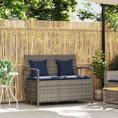 Garden Bench Dark grey cushions, Natural wood