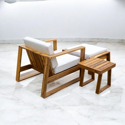 Mshliw Acacia Wood Outdoor Lounge Set with Chair, Ottoman, and Side Table – Comfortable Patio Set for Gardens, Balconies, and Poolsides