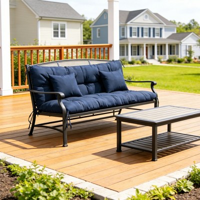Outdoor Bench Cushion Set - 4 Piece Tufted Patio Bench Seat and Back Cushions with 2 Decorative Throw Pillows, Water Resistant Brown Polyester