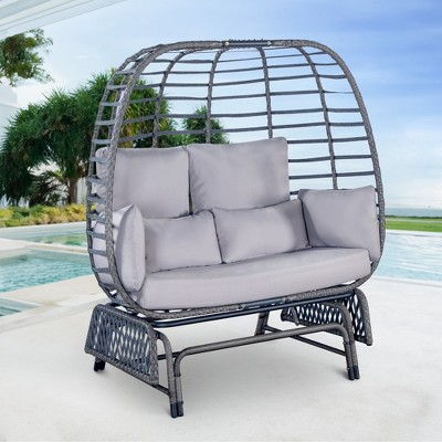 Brafabhome 2 Person Patio Egg Chair with Cushions, Rattan Wicker Garden Lounge Egg Chair, Fabric Upholstered Egg Chair With Rocking Glide Frame | Gray
