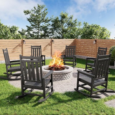 coucheta Lumber Rocking Chair Outdoor Set of 6, HDPE High Back Porch Rocker Chairs with Wood Texture, All Weather Resistant Furniture for Patio