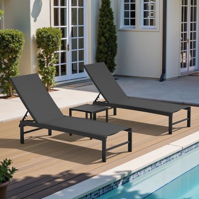 Crestlive Products 3 pcs Patio Outdoor Aluminum Mesh Chaise Lounge Chairs and Side Table Set Sun Lounger with Adjustable Backrest