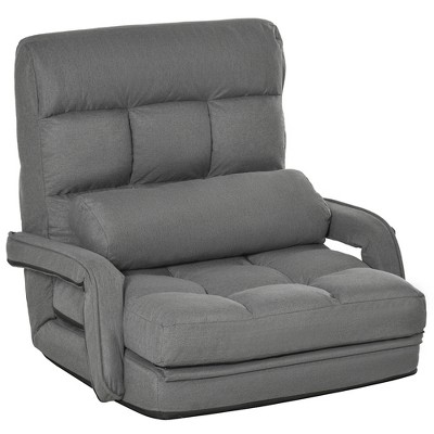 HOMCOM Convertible Floor Sofa Bed, Recliner Armchair Polyester Sleeper Chair with Pillow for Living Room Bedroom Lounge, Gray
