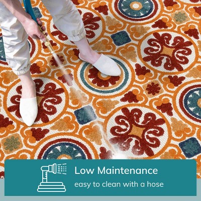 Last but not least, sustainable materials are becoming increasingly popular in outdoor rugs. Many manufacturers are now using recycled materials like plastic bottles and fishing nets to create durable and eco-friendly rugs that can withstand the elements.