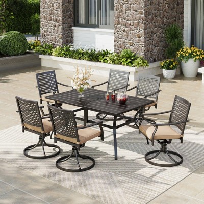 A: For compact patios or balconies, a small space patio dining set is ideal. Larger spaces can accommodate a 7-piece outdoor dining set or even an extendable outdoor dining table for hosting bigger groups.