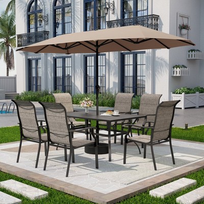From compact small space patio dining sets to large 7-piece outdoor dining sets built for family gatherings, there’s a wide variety of options to fit your needs. If you love versatility, an extendable outdoor dining table is an excellent choice. It allows you to maximize seating when guests arrive, then fold back to a smaller footprint for everyday use. For cozier setups, a round outdoor dining table set creates a more intimate, conversational atmosphere.