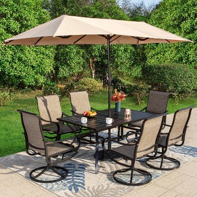 From compact small space patio dining sets to large 7-piece outdoor dining sets built for family gatherings, there’s a wide variety of options to fit your needs. If you love versatility, an extendable outdoor dining table is an excellent choice. It allows you to maximize seating when guests arrive, then fold back to a smaller footprint for everyday use. For cozier setups, a round outdoor dining table set creates a more intimate, conversational atmosphere.
