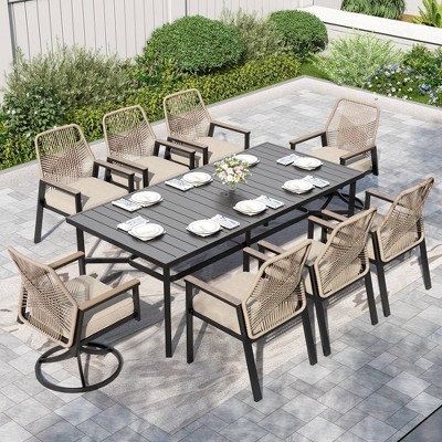 A: For compact patios or balconies, a small space patio dining set is ideal. Larger spaces can accommodate a 7-piece outdoor dining set or even an extendable outdoor dining table for hosting bigger groups.