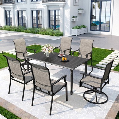 A: For compact patios or balconies, a small space patio dining set is ideal. Larger spaces can accommodate a 7-piece outdoor dining set or even an extendable outdoor dining table for hosting bigger groups.