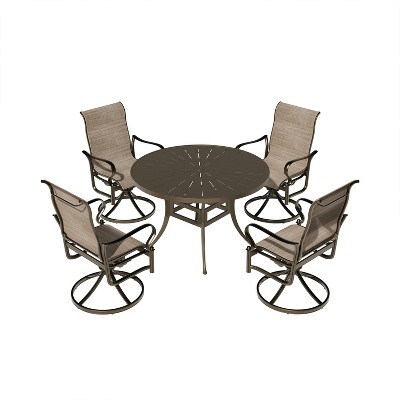 A: Teak outdoor dining sets are among the most durable, thanks to their natural resistance to moisture and pests. Aluminum outdoor dining sets are also a strong, lightweight, and low-maintenance choice.