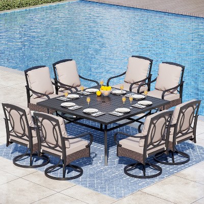 A: For compact patios or balconies, a small space patio dining set is ideal. Larger spaces can accommodate a 7-piece outdoor dining set or even an extendable outdoor dining table for hosting bigger groups.
