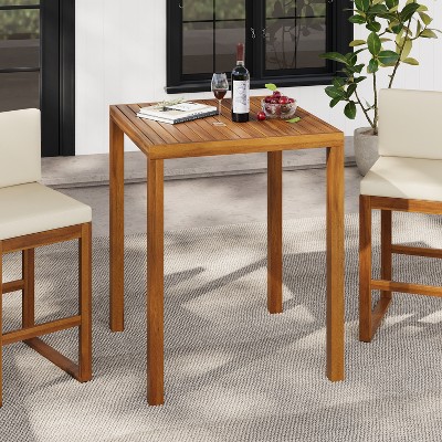 Emma and Oliver Outdoor Bar Height Table with Faux Teak Poly Slats