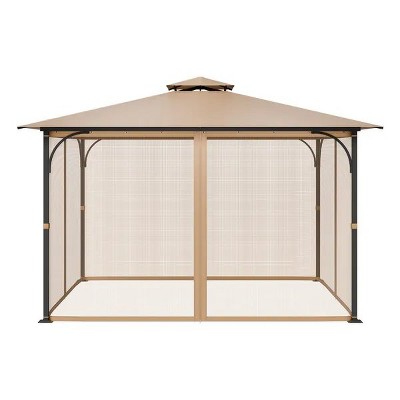 Gazebo Netting Replacement, Fit Most 10x12x7.3 FT Gazebo, 4-Panel Sidewall Mesh Gazebo Curtain, Patio Midge Netting w/Double Zipper, (Netting Only)