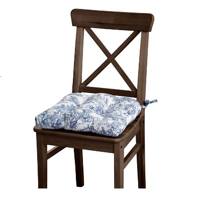 Ellis Curtain 100% Cotton Victoria Park Toile Poly Filled Chair Pad 15" x 14" Blue