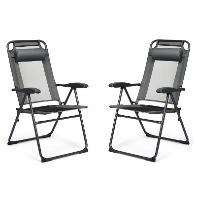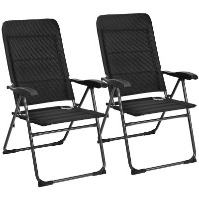 ADILE Set of 2 Patio Chairs, Folding Chairs with Adjustable Backrest, Black