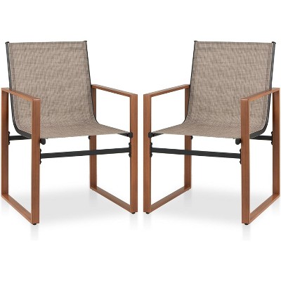 Outdoor Dining Chairs with Breathable Seat & Backrest, Set of 2, Brown